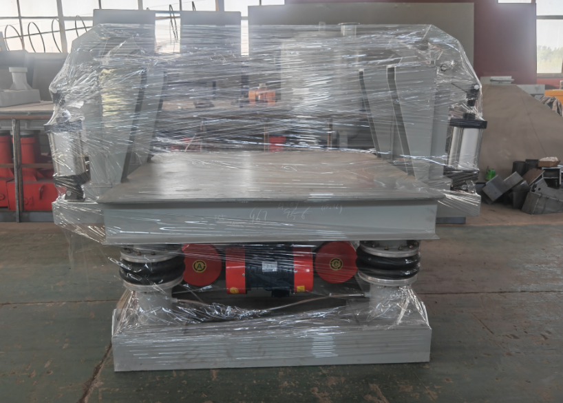 The multidimensional vibrating platform has 4 functions:2.1 Generating an upward resultant force with a stroke of 100 mm.2.2 Generating a centripetal force to draw the sand toward the center.2.3 Generating horizontal vibration force.2.4 Under the control system, it can generate a force to convey sand to one side, and can realize alternate sand conveying to both sides, changing the sand flow direction at any time.