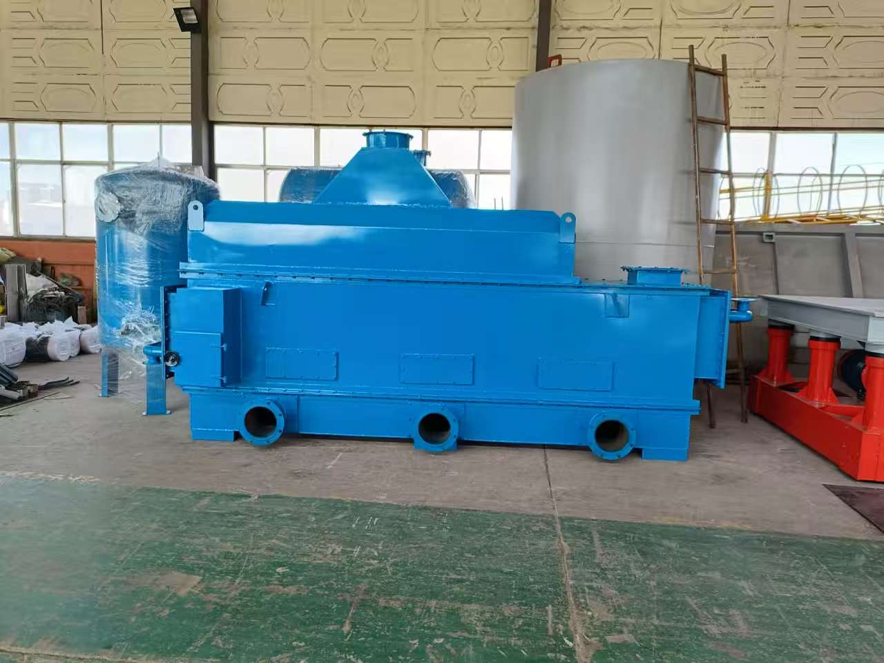Under the action of the blown air, the sand grains are in a suspended state, and heat exchange and cooling are carried out with the action of cooling water. During the movement, friction occurs between the sand materials, making the attached fine powder detach and enter the dust removal system with the suction air flow. At the same time, the fluidized sand moves from the inlet to the outlet under the action of pressure difference, and the cooled sand is discharged from the outlet of the cooling bed.